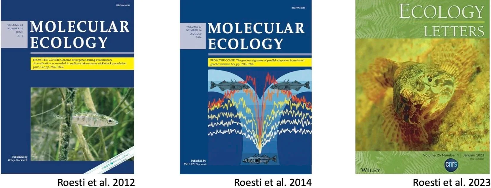 Roesti M, Gavrilets S, Hendry AP, Salzburger W, Berner D (2014). The genomic signature of parallel adaptation from shared genetic variation. Molecular Ecology, 23, 3944–3956. Reprint SupplMat Cover [From The Cover paper | Ranked as 'Exceptional' by the F1000 | Perspective on this paper by Jiggins & Welch 2014 Reprint]